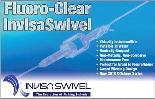 The folks at Aquateko thought about that. So they developed the InvisaSwivel, a clear-plastic swivel made with fluorocarbon. The InvisaSwivel is invisible under water. It’s also meant to perform better than metal swivels. The lighter weight allows the line to move more naturally than Neither saltwater nor freshwater affects the InvisaSwivel. The space-age material -- specifically Fluoro-Clear, a type of fluorocarbon -- also self-lubricates the InvisaSwivel, the company says. Plus the InvisaSwivel won’t nick the rod guides like metal will. What’s more, the InvisaSwivel can be bent hundreds of times InvisaSwivels come in 12-, 25-, 35- and 55-pound sizes. An invisible swivel -- that figures, huh? For more info on the InvisaSwivel, visit the Aquateko Web site. |