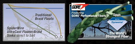 in But aren’t most fishing products like that? Almost all are improved, not really new. How much they are improved becomes Here’s one of the more innovative products introduced in angling SpiderWire UltraCast FluoroBraid is a braid that sinks like fluorocarbon. Synthetic braids like the original SpiderWire, introduced a decade ago, became known for qualities including strength and castability. But slack in the line, because traditional braid floated, was one drawback, if the line had any. Fluorocarbon line, another recent innovation, decreased slack, because the line was the same density as water. SpiderWire’s FluoroBraid combines the two. A material called Gore fluoropolymer, a breakthrough, SpiderWire says, is combined with the Dyneema in the original SpideWire. FluoroBraid is made to combine braid’s strength and castability with the quicker hook sets and sensitivity from less slack. Available in moss green, FluoroBraid comes in eight sizes from 10-pound to 80-pound test, ranging in diameter from .008 to .018 inches. FluoroBraid is great for casting lures with more power, pitching them into heavy cover with less worry about break-offs, tossing them on windy days when fast sinking helps, or trolling for extra lure depths. Some might think the synthetic braids introduced in recent years were themselves spanking new ideas. Actually, they were new versions of one of the earliest fishing lines: braids made from natural fibers like cotton or linen. They were considerable improvements, and FluoroBraid appears to be, too. For more info, visit the SpiderWire UltraCast FluoroBraid Web page. |
