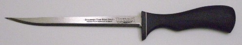 But a beaver’s teeth are The teeth are hard on the outer The knife makers at Titan Knife noticed this, and with that thought in mind, developed a self-sharpening, corrosion-resistant fillet knife. The Titan Knife’s blade is The two sides, one harder and the other softer, make the blade The more the knife is used, the more “aggressive” it becomes, A Titan Knife rarely needs to be sharpened, but a few light strokes with any common knife sharpener will sharpen it, the company says. The fillet knife is the last anyone will need to buy, Titan Knife says. The company will re-sharpen, re-carbide or repair the knife, so long The knives, each handmade, come in three sizes – 6-inch, 8-1/2-inch and 12-inch – and all feature a marine-grade plastic handle. Keeping the blade sharp and corrosion-free are an angler's biggest concerns about a fillet knife, and the Titan Knife is made to do For more info, visit the Titan Knife Web site. |