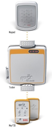 From top to bottom: The keypad that's installed on the boat, the electronics that track and are installed on the boat, and the keypad that the user carries. Spot Hug is entirely wireless. |