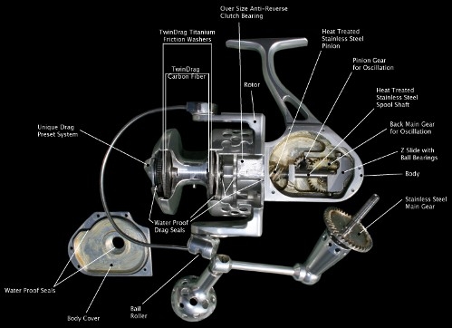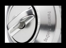 A pre-set knob (shown at left) Circular, machined holes around the spool help reduce heat build-up, Fish on! Fish landed! You know? For more info, visit the Accurate TwinSpin Web page. |