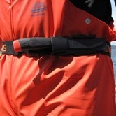 Anytime you jump on A knife. So when Grundens, the company setting the standard for slicks, The Gage Deck Knife features a thin, serrated, stainless-steel The sheath, with a belt clip, is made to be worn in a variety of ways, including on bib suspenders. Magnets in the sheath grab the blade with the right balance to hold the blade secure, but allow it to be withdrawn easily, including in case the knife is worn upside down. Grundens thinks the Gage is the best affordable knife for the professional fisherman or outdoorsman, the company says. For more info, visit the Grundens Deck Knife's Web page. |
