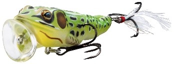 Some lures seem The lures look LiveTarget’s The FrogPopper – winner of the Best New Hard Lure Award at ICAST this year – is, of course, a frog that's a popper. What’s more, it’s lifelike. Most poppers are cone-shaped, like nothing alive. “The challenge with conventional poppers has always been the profile,” Grant Koppers, the company’s founder, said. The Frog Popper is shaped like the real deal: a fleeing frog. Realistic painting will also make fish more likely to pounce, The Frog Popper will be available in two sizes and five colors. The company won "best new product" awards twice before at ICAST, LiveTarget, founded in 2007, has quickly built a reputation But that’s because the lures catch fish. From the looks of it, the Frog Popper will, too. At press time, the company’s Web site was yet to include a Web page for the Frog Popper. For more info about the company, visit LiveTarget’s Web site. |