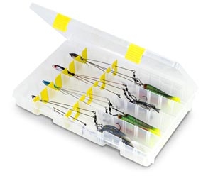Stowing an umbrella rig in Awkward. So Plano came up with The box neatly stores Alabama rigs, for largemouth bass fishing, or other umbrella rigs. Up to four of the rigs fit in the box, and the box fits many of the tackle systems built to hold several of these 3700 series Plano StowAway boxes at once . Dividers in the box can also be arranged to hold other tackle like For more info, visit Plano’s Web site. |