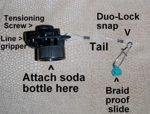 Most anglers The Ultimate Fishing Float is made to be used with most 1- or 2-liter Coca-Cola Company soda bottles. It fits the thread of those bottles, and not all soda bottle threads are When a fish smashes the bait, the line gets pulled loose from a gripper, and the line is reeled through the float’s slide to land the big game. Then the bottle can be reused. Or, have another Coke, relax, and use the new bottle to catch. If the fish isn’t full from that polar bear. For more info, visit the Ultimate Fishing Float’s Web site. |