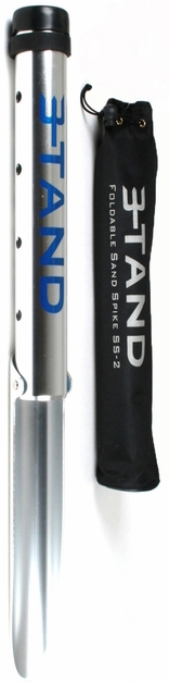 Like those reels, the spikes, for holding rods, are made to be the best. Sand spikes are usually clumsy to carry. But 3-TAND’s spikes fold in half, made to be easy to carry. They can be stowed in a nylon bag -- included with the spikes -- that comes with a belt loop and a drain hole. The spikes, available in two lengths, are made from aluminum and stainless steel to be light but strong. Both lengths themselves are adjustable in length by inserting a rod through holes in the sides. Features also include a concave bottom, like a pipe that’s split in half, shown in the photo. That penetrates sand easier than the usual PVC spikes do. The 3-TAND spikes can also be used at other locations, like wedged between rocks, or along river banks, lake shores and saltwater flats. For more info, visit the 3-TAND Sand Spikes Web page. |