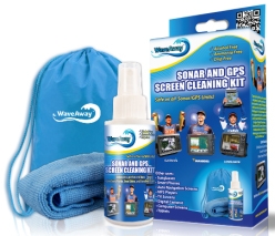 Usually with a T-shirt or a rag and whatever liquid cleaner or water is handy, like from a drinking bottle. WaveAway is made to clean sonar or GPS screens or LCD’s on boats. It’s a small kit that includes about a 2-1/2-inch spray bottle and a cloth in a pouch. Some cleaners contain ammonia or alcohol that strips protective coating from screens. WaveAway contains none of that. The cloth – microfiber, the company says – is soft enough that it doesn’t scratch the screen but not so soft that it soaks up cleaner, wasting product. WaveAway can also clean sunglasses, cell phones, digital cameras, computer screens and so on. Stop expecting Poland Spring on your fish rag to clean your fish finder. Use something that actually cleans. For more info, visit WaveAway’s Web site. |