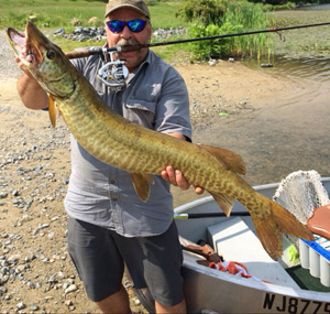 ![]() Mark Kendra, Kendra Gear's owner, with a musky landed from a New Jersey lake on a Straightcast Reel. |